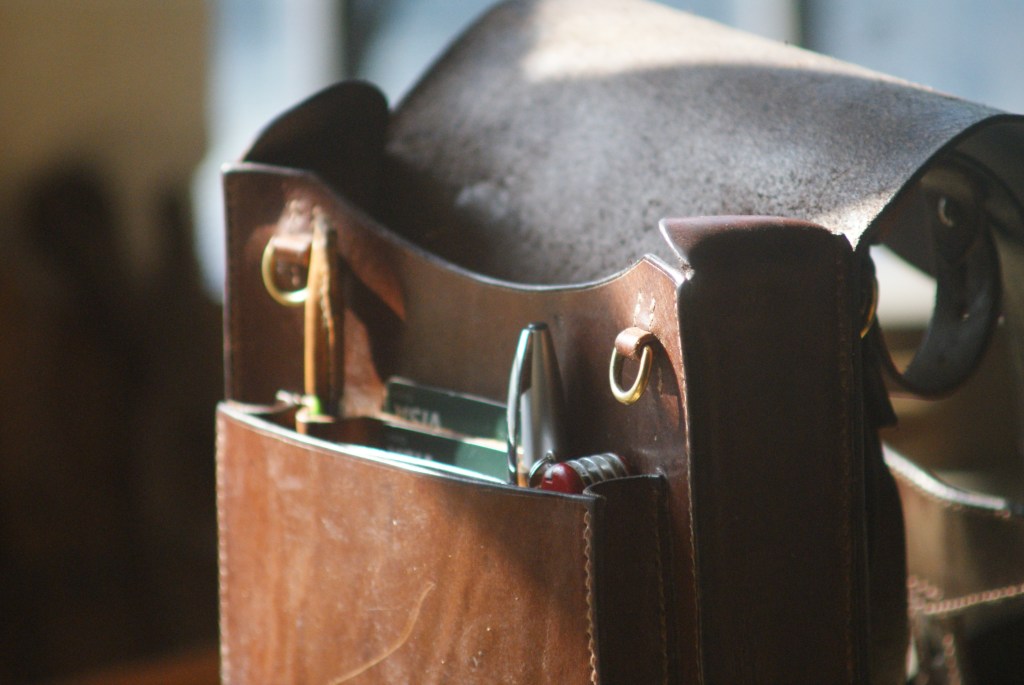 In the previous blog about my own daily used cross body bag, the one that has been receiving a beating for a few years, I discussed my thoughts about how it has been performing over the years. I had been thinking of upgrading the bag. The first upgrade was to add some small d-rings for attachment of lanyards to which I could securely attach keys and my torch. The second upgrade was to add a secure slot on the gusset for quick access items. The third upgrade was to line and stitch the front over flap closure strap and plate. The first and third upgrades are done and I am really, really happy with the results. Please see the photographs below.