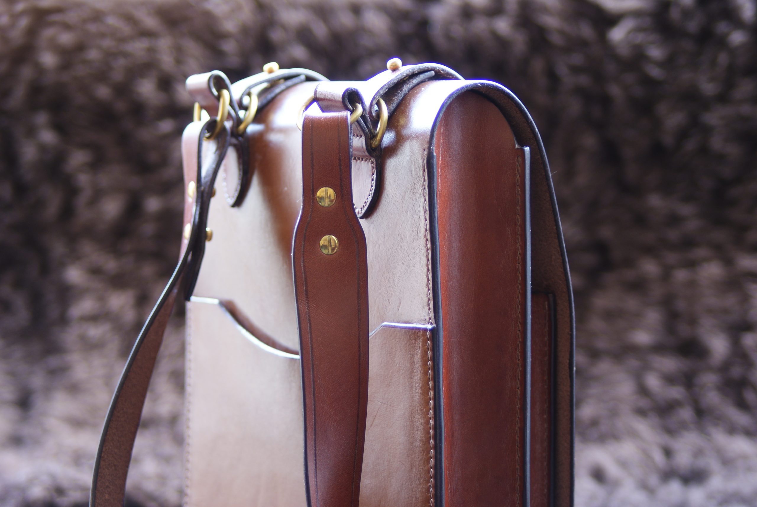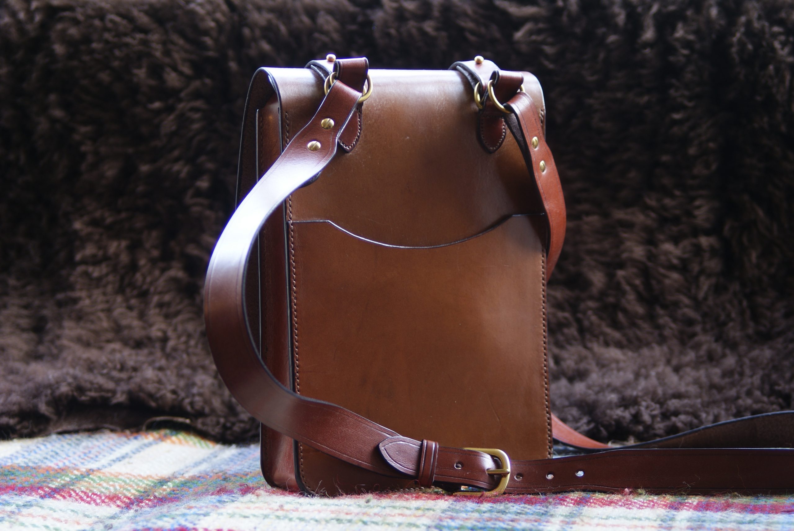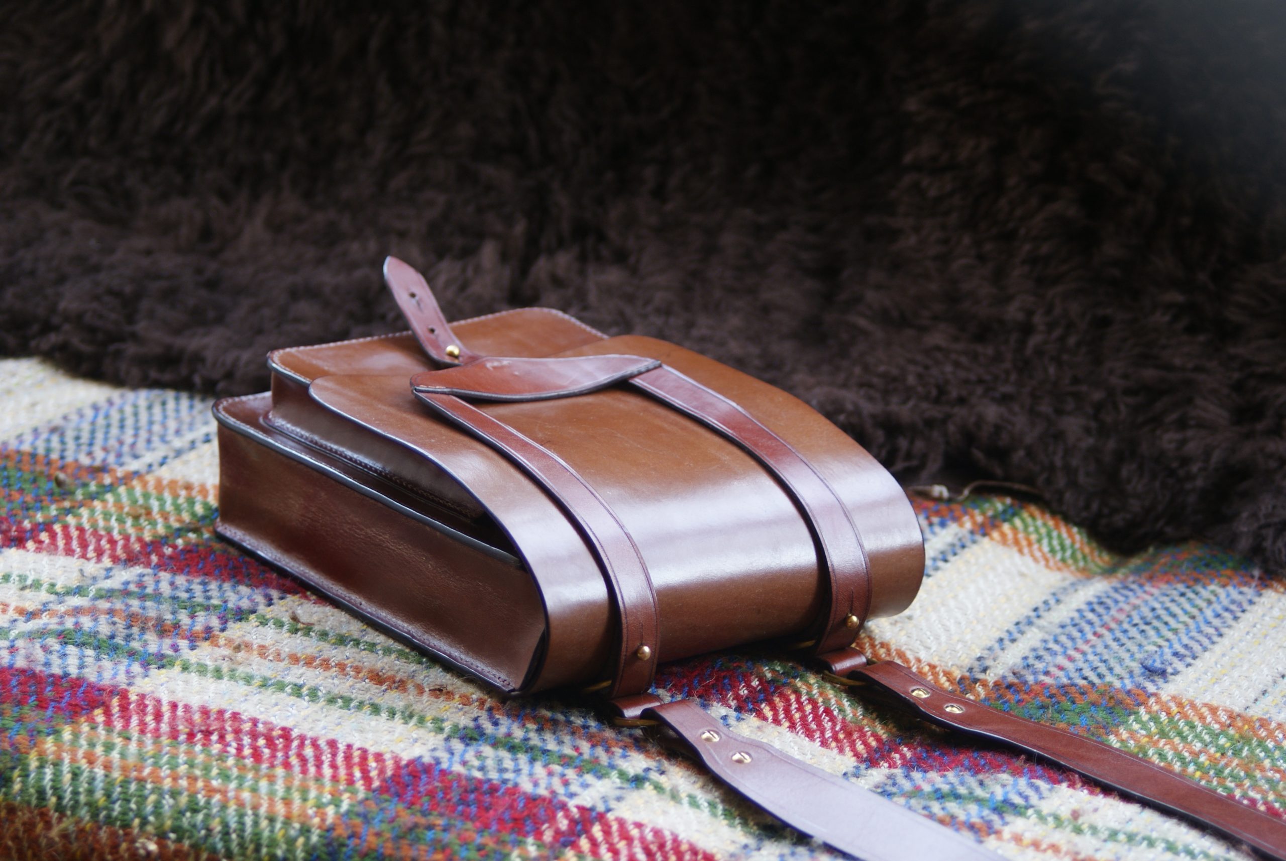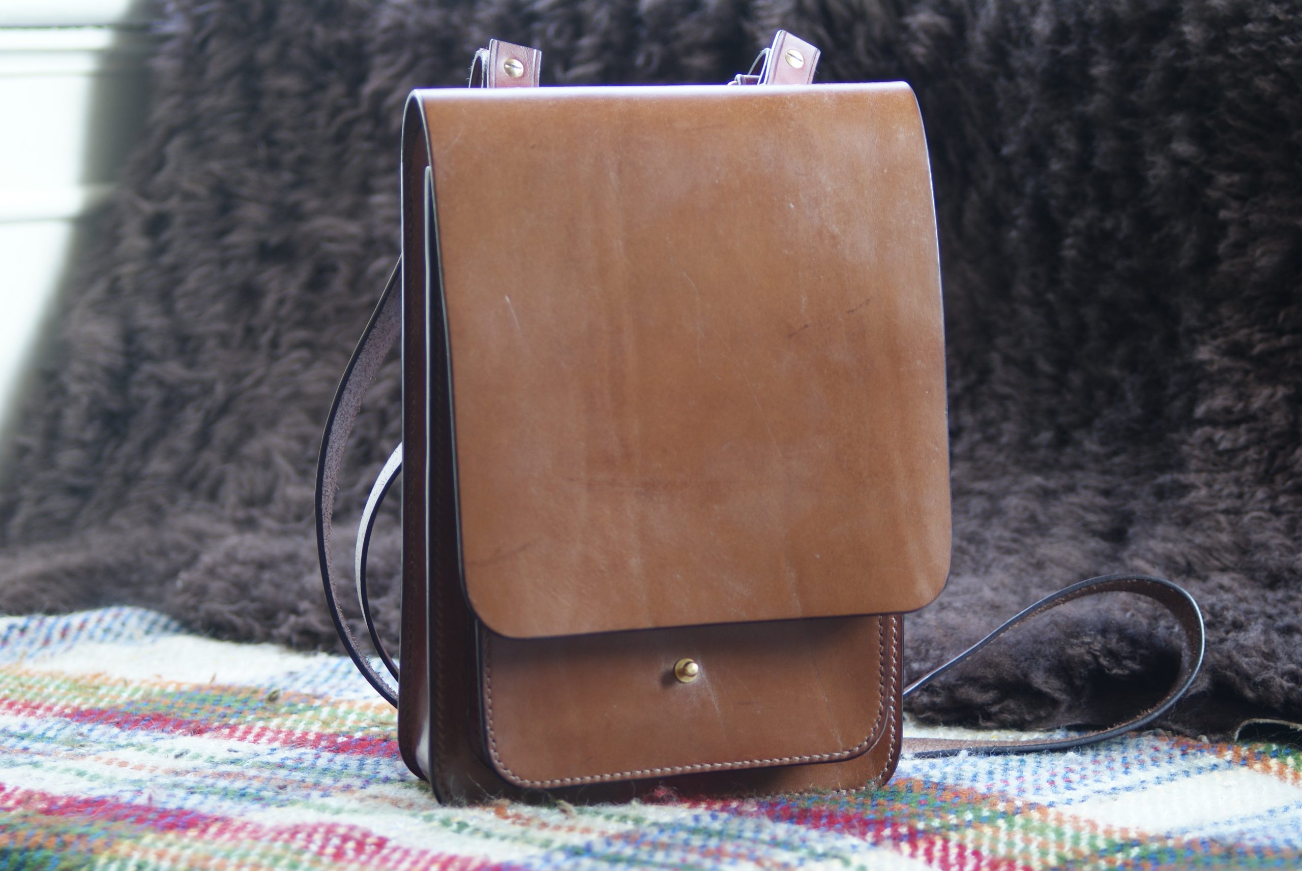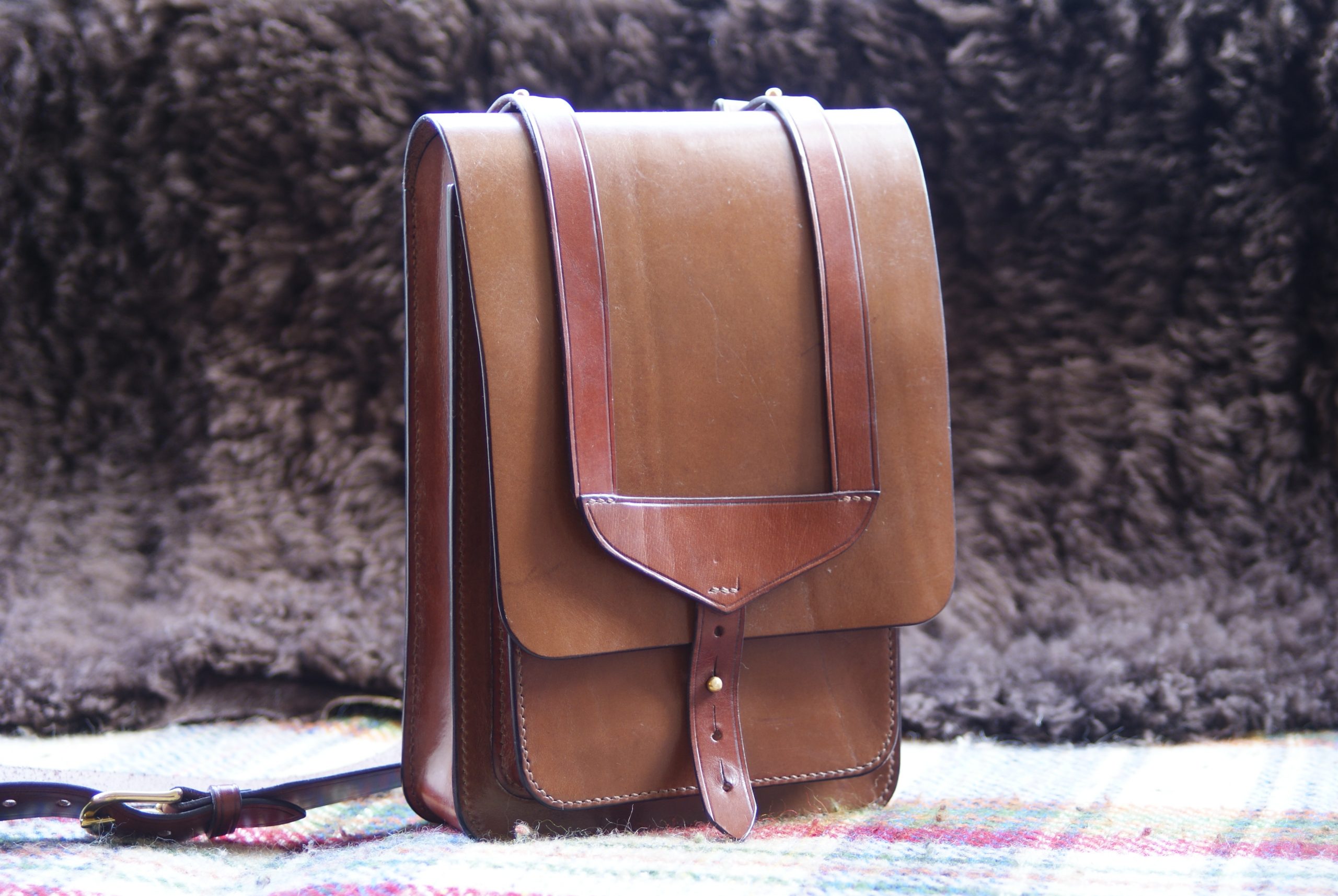 Pictured: made with bridal leather and hand stitched with pure linen thread. Fully adjustable straps. External and rear pockets. Internal organisation in front pocket.
