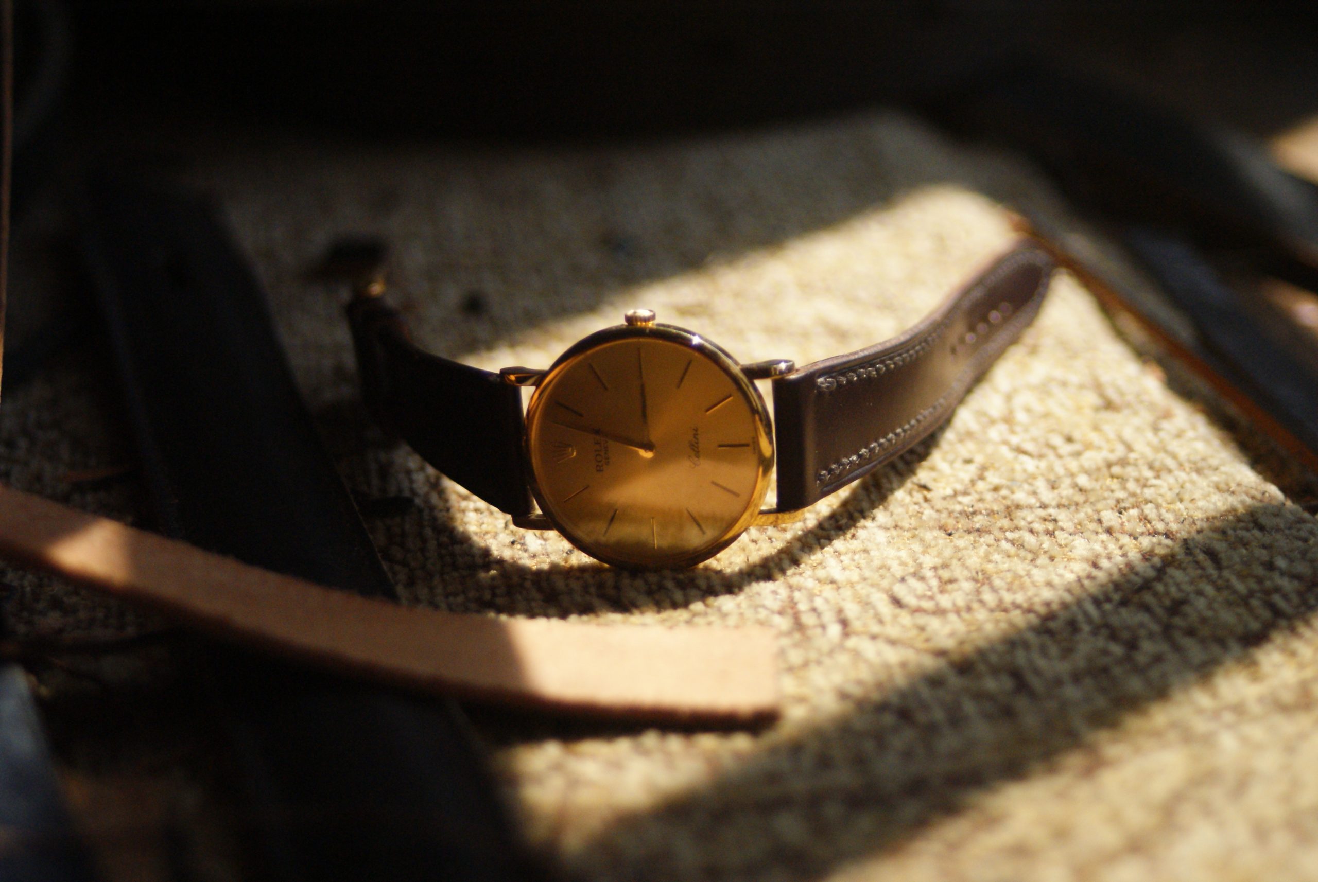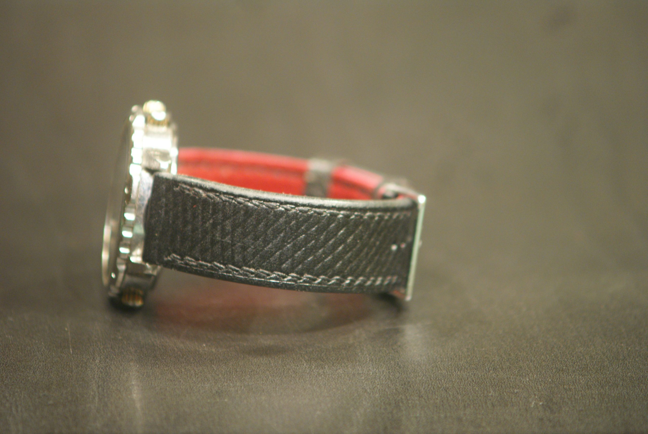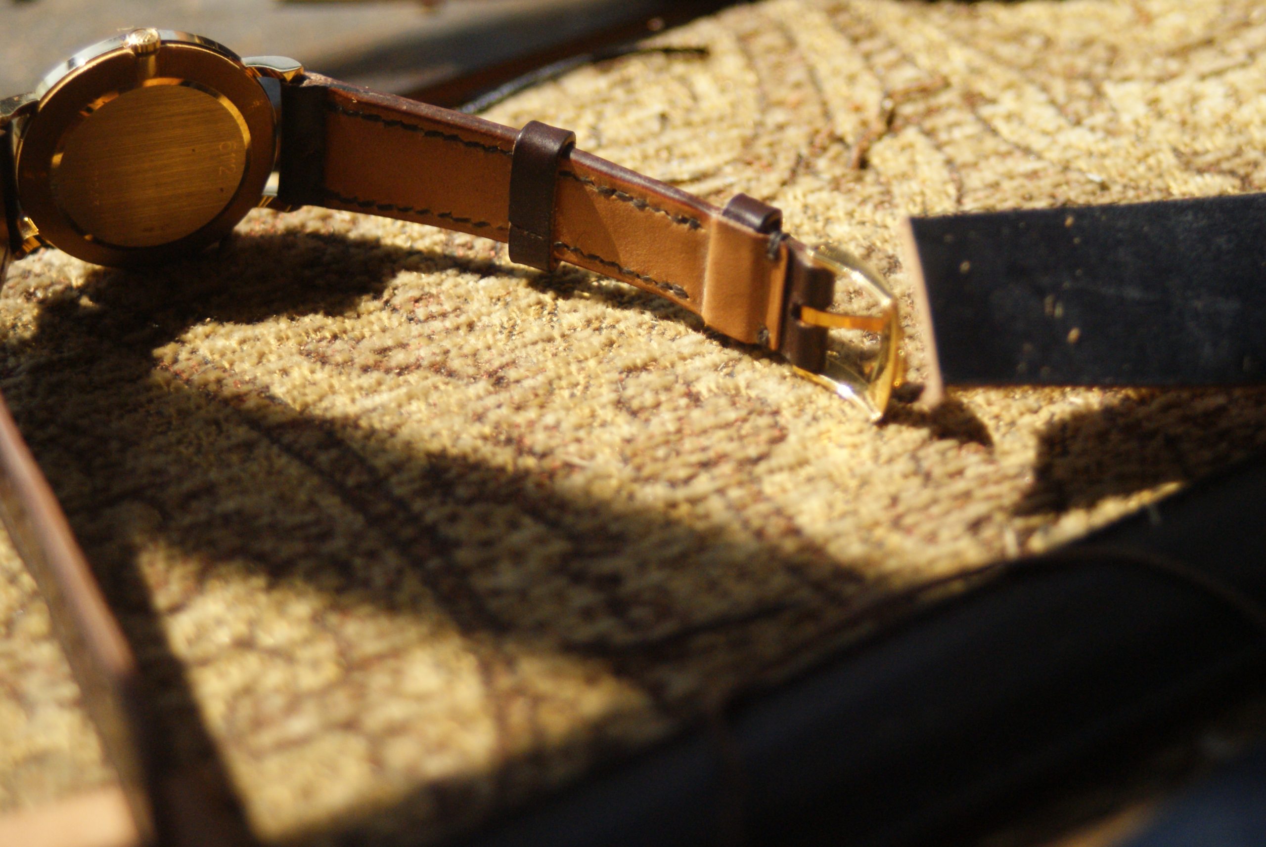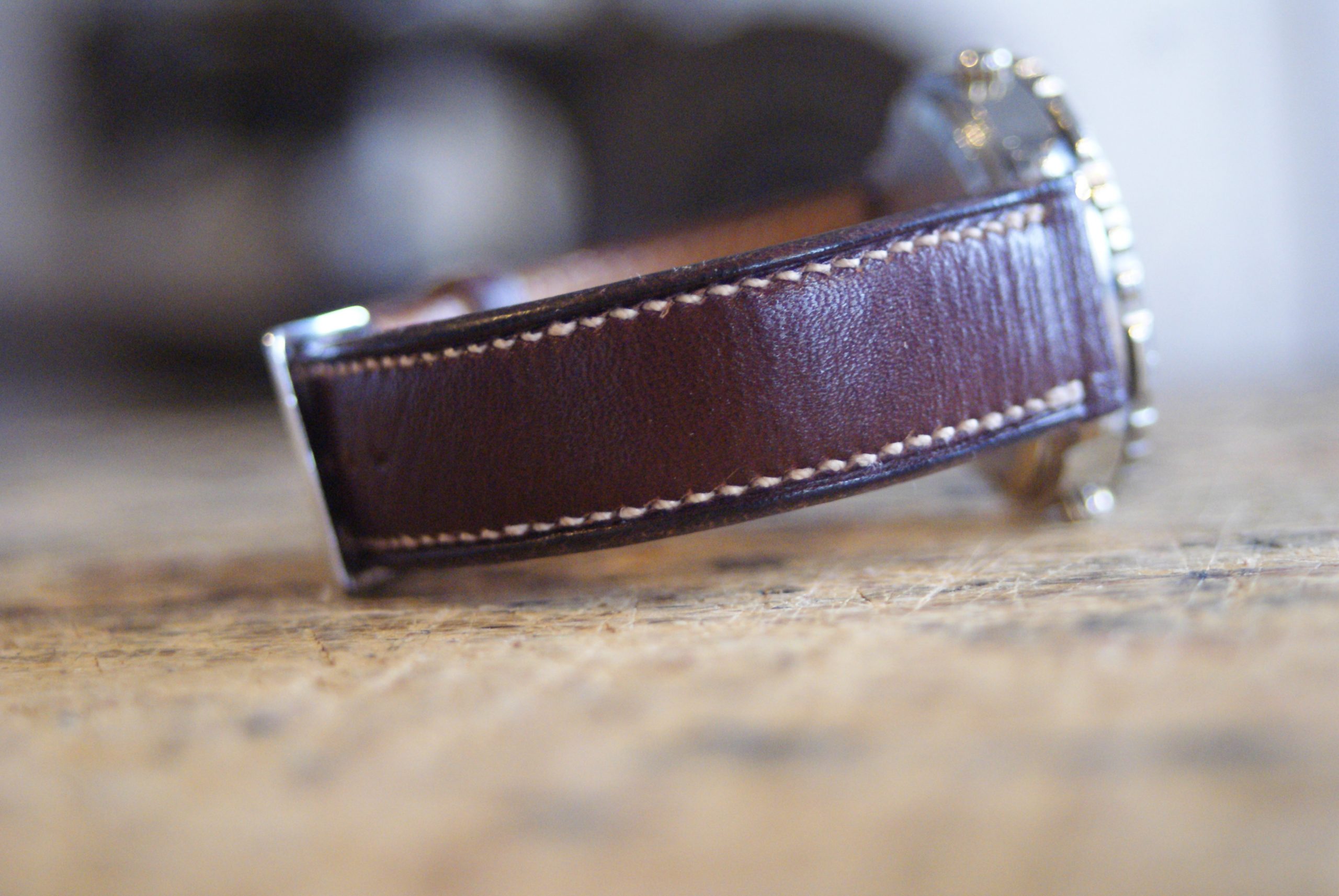 The watch straps in the photographs are made with a range of high quality leathers and linings and pure linen threads. They are completely hand made. Hand cut, hand stitched and the edges are hand burnished using traditional materials and methods. Watch straps can be made for most watches and the straps can be attached using the original hardware or new hardware.