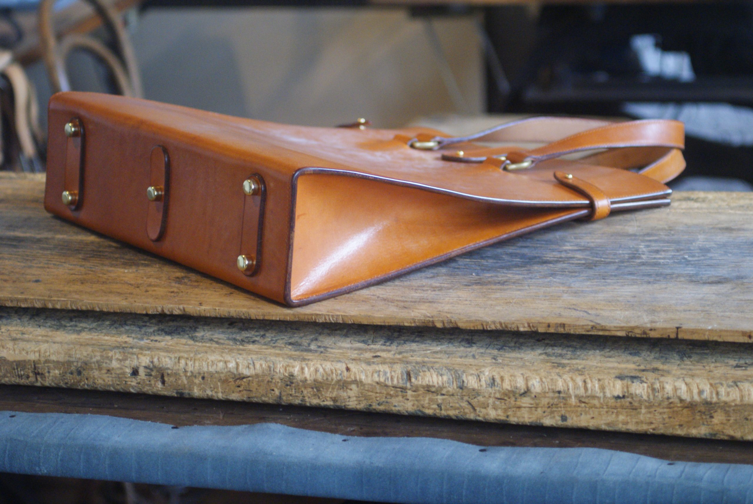 Pictured: Traditional English made oak bark tanned leather with side straps for expansion, English solid brass hardware and hand stitched with pure linen thread.